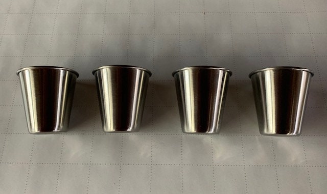 4 Stainless Steele shot glasses, each is 2.5oz.