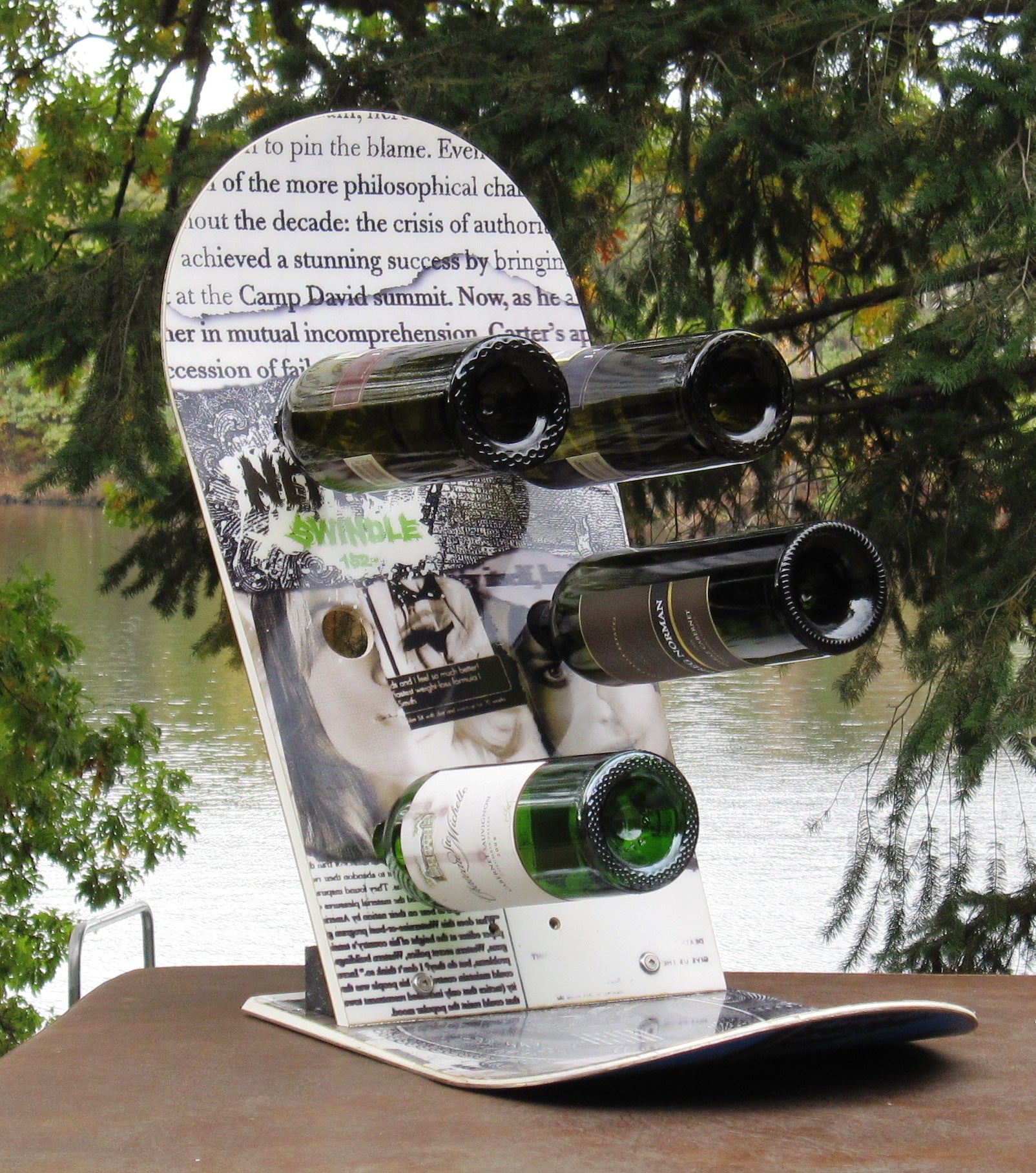 You don't have to be a wine connoisseur or an expert skier to appreciate this innovative way to display your favorite vino. The bottles are stored on their sides to properly maintain the wine's integrity, while the reclaimed boards, slightly weathered from use, add a touch of fun and excitement.