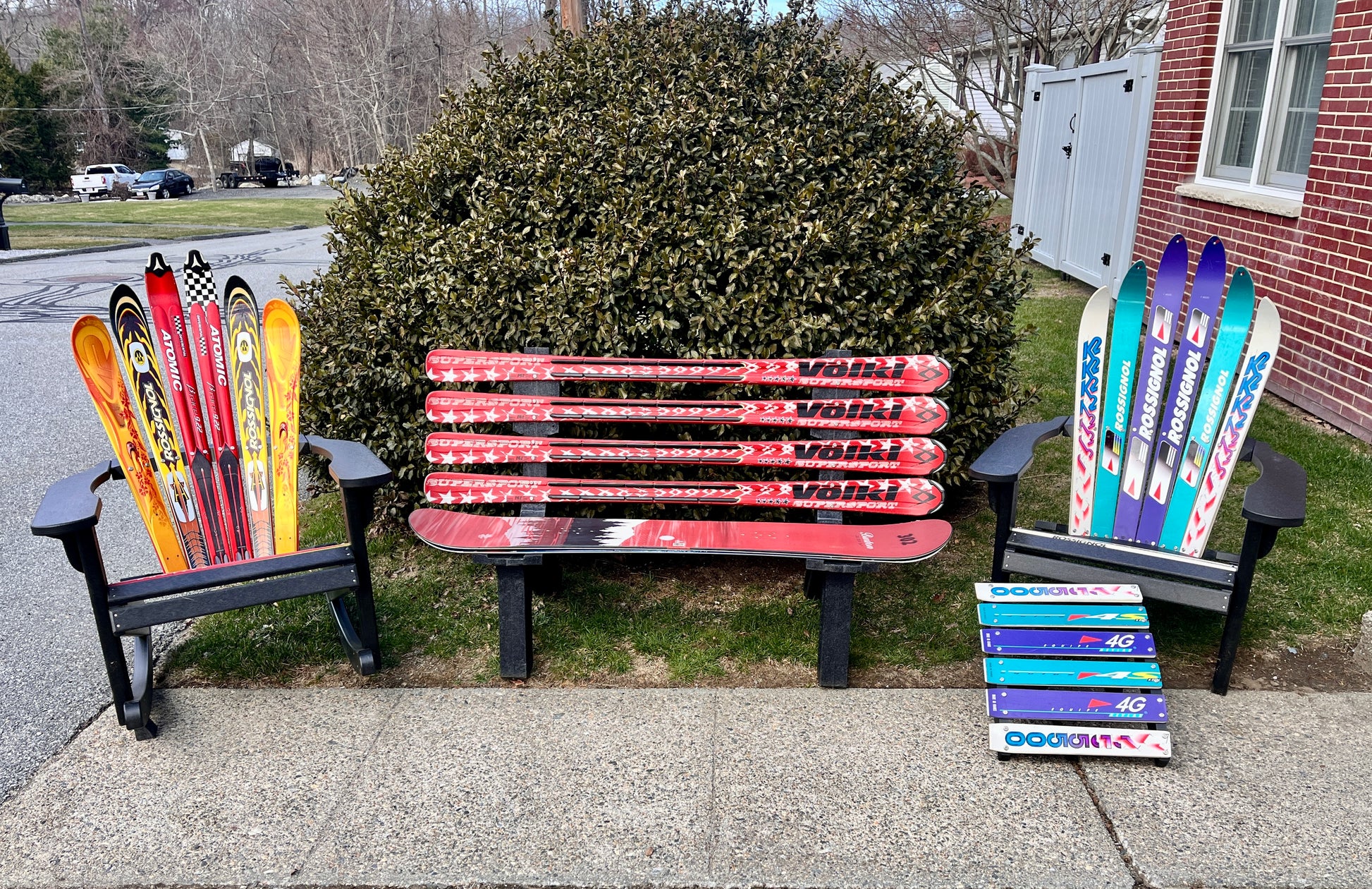 Ski Patio set - 3 piece - Customize your Recycled Snow Ski or Snow Board Patio set - Skichair, Bench and Rocker