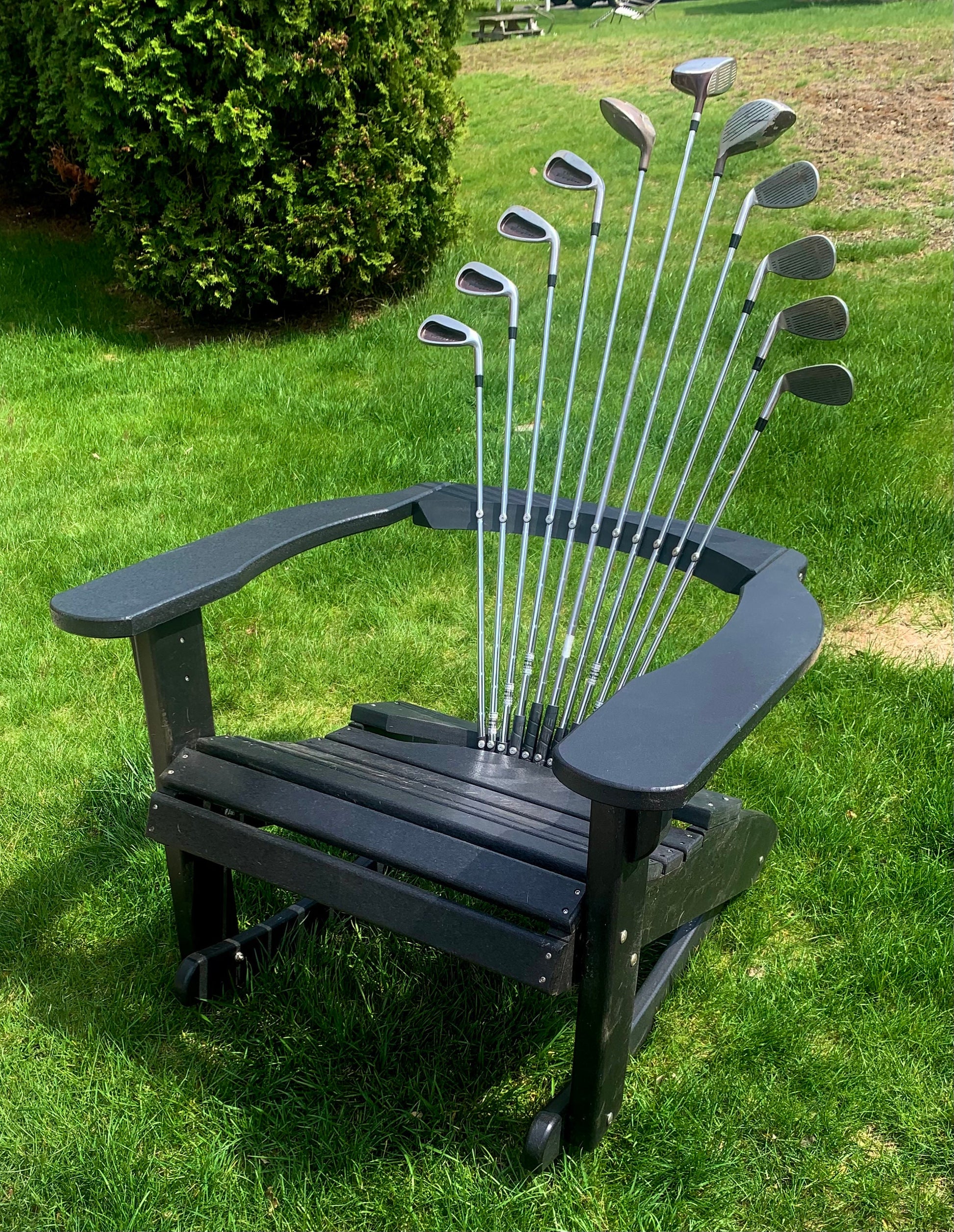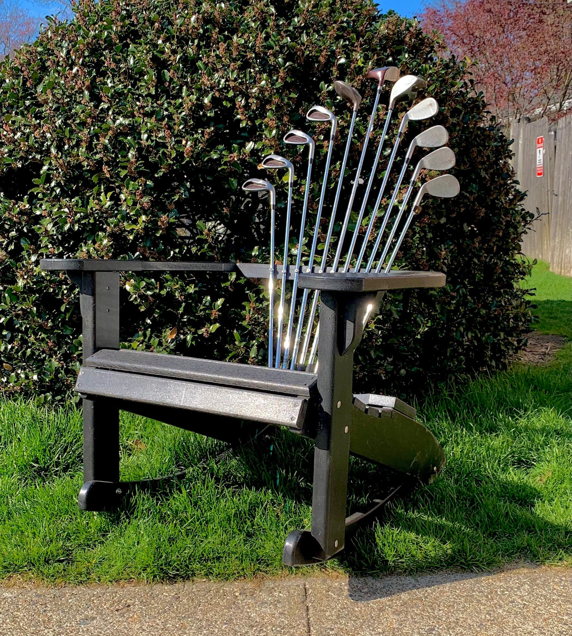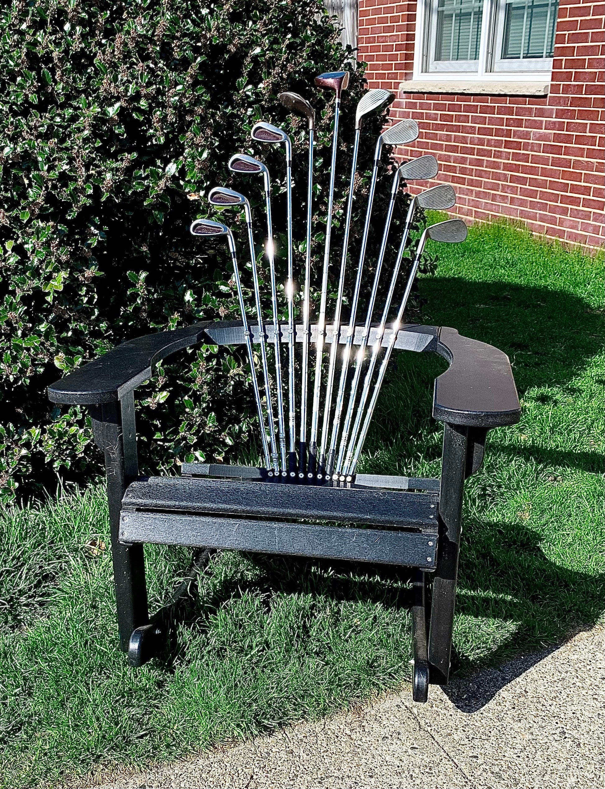 On the Deck, by the water, or on the Golf Course, this gorgeous recycled Golf Rocker is the place to relax after a hard day of thrashin. Order today.