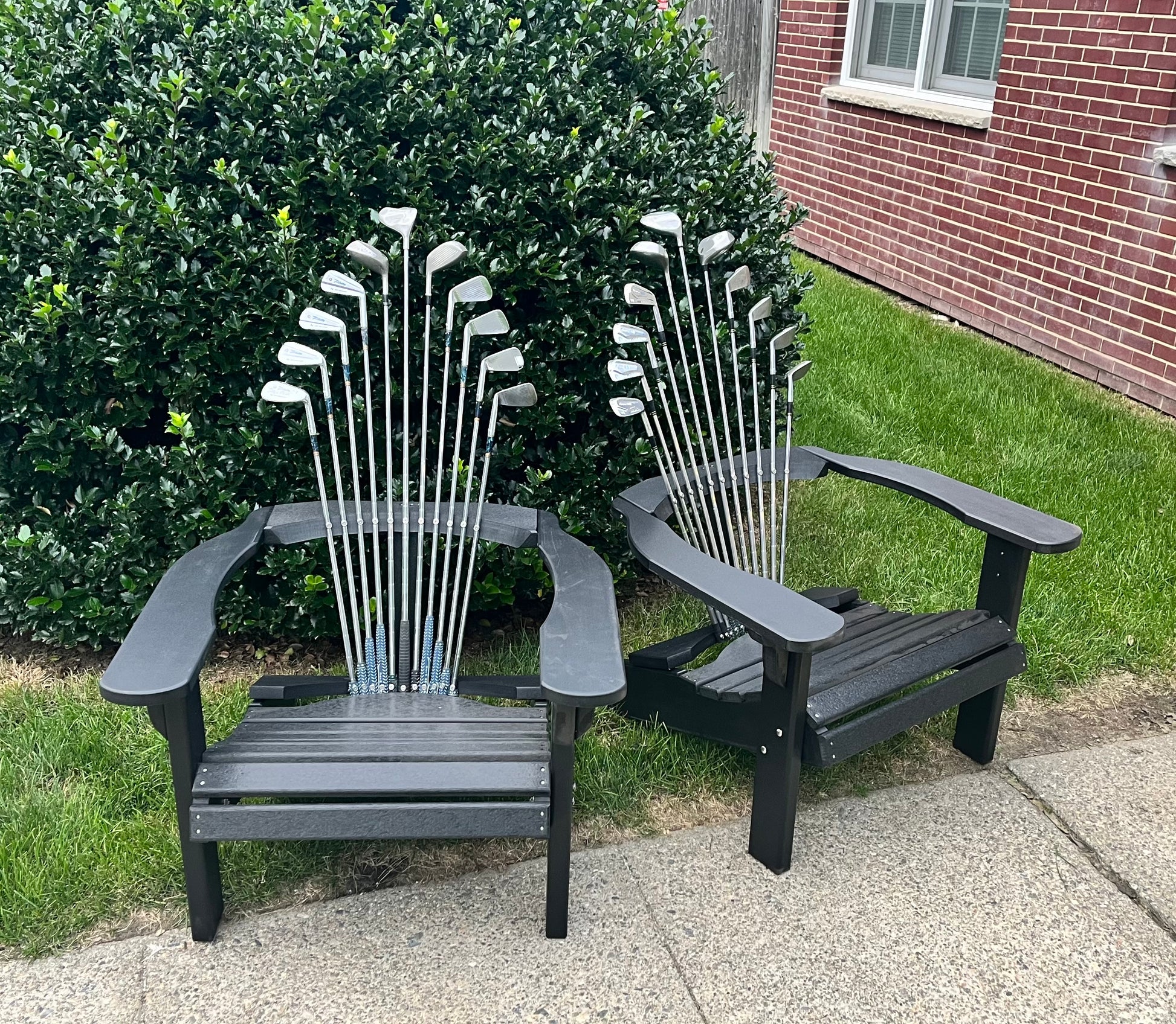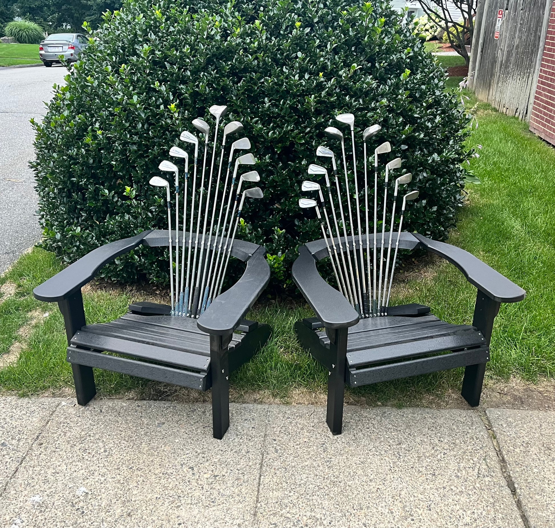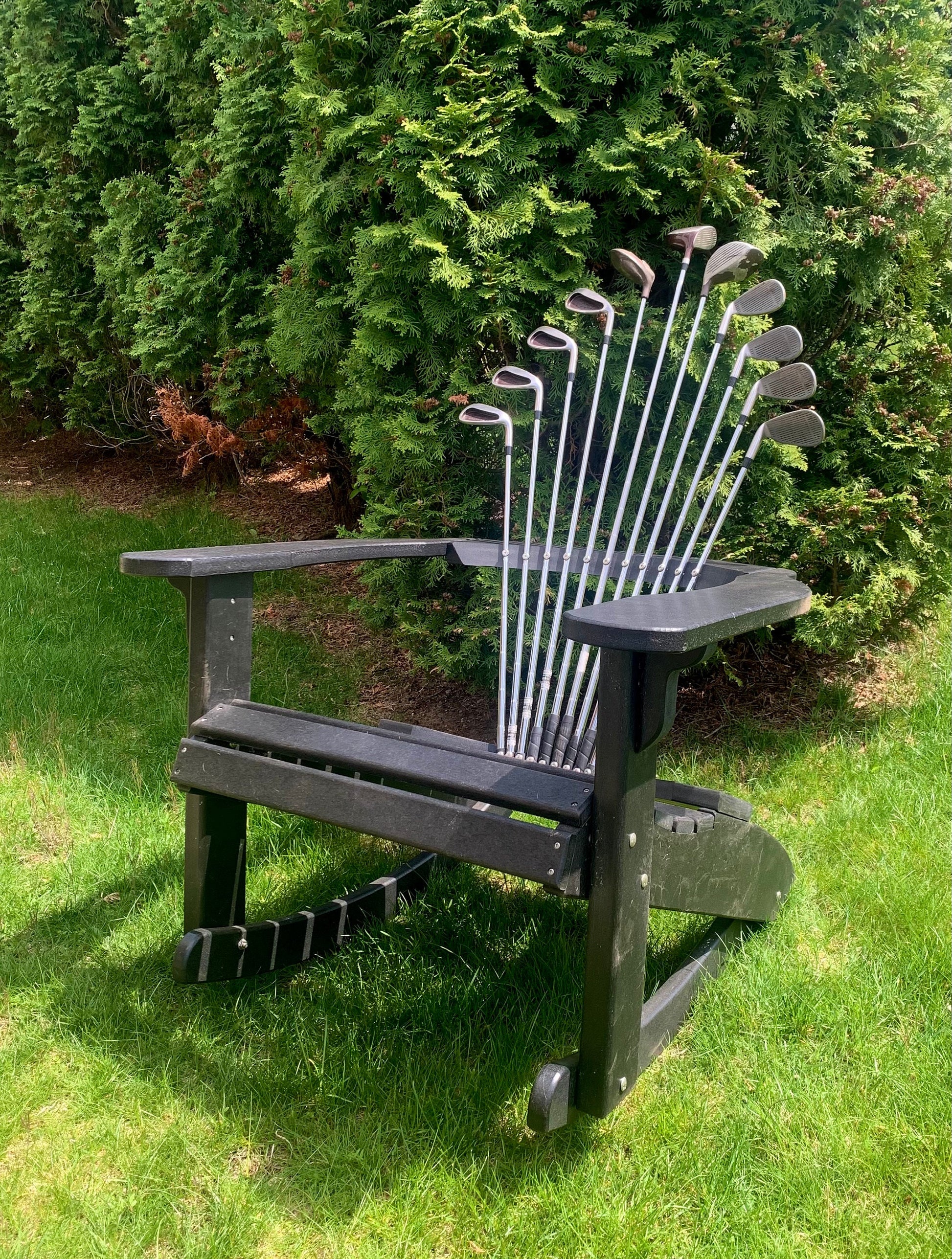 On the Deck, by the water, or on the Golf Course, this gorgeous recycled Golf Rocker is the place to relax after a hard day of thrashin. Order today.