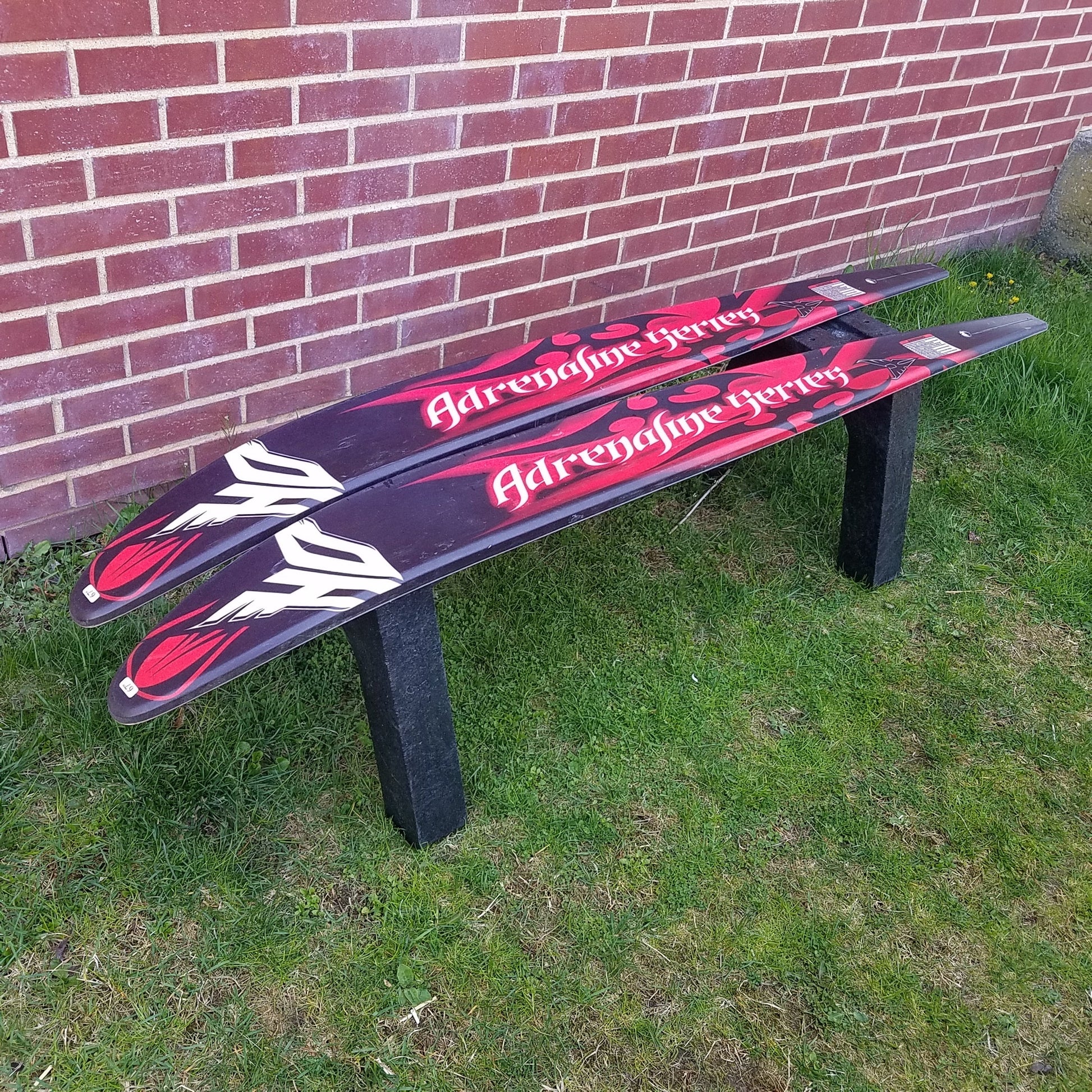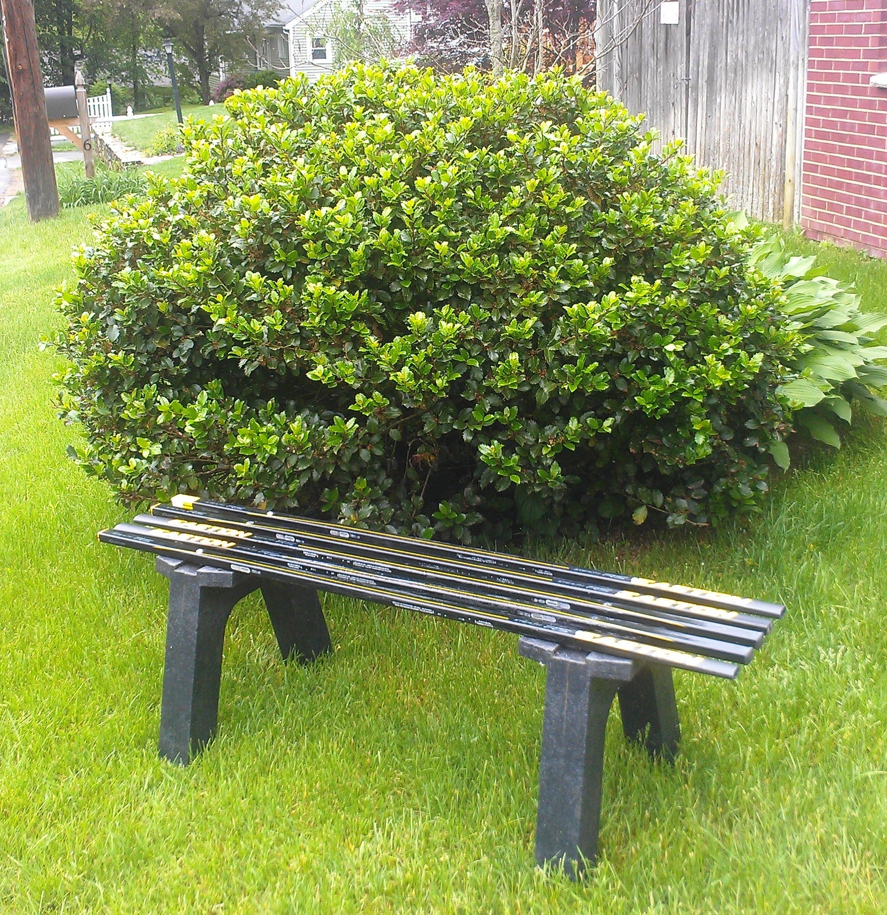 These tables or Seats are made entirely of recycled products and utilize recycled skis and boards. The table or seat legs are made from recycled plastic and weigh 15lbs each. The recycled plastic legs are available in black.