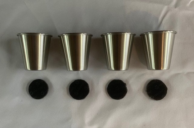 4 Stainless Steele shot glasses, each is 2.5oz.