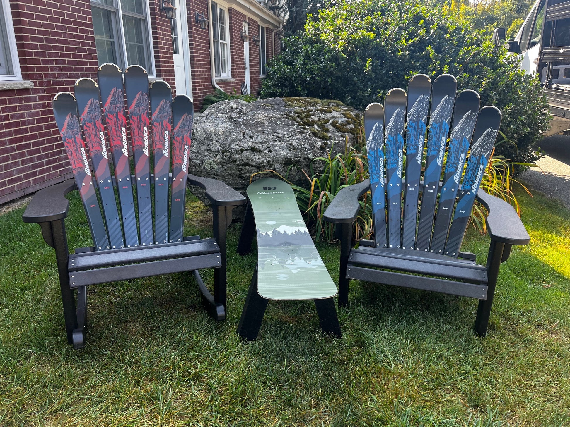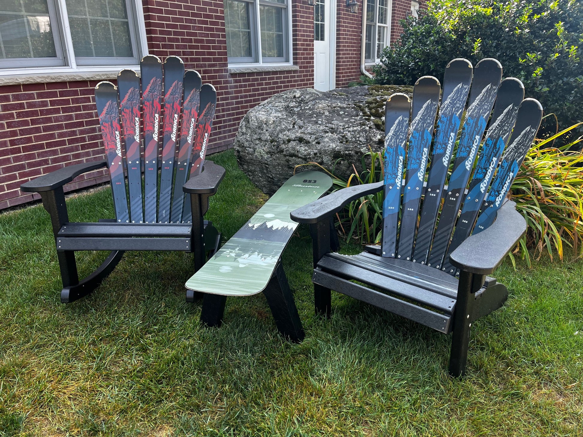 This includes 4 piece Patio set - A Skichair, Snowboard or Snow Ski Table and a snow board or Ski Bench and a Ski Rocker
