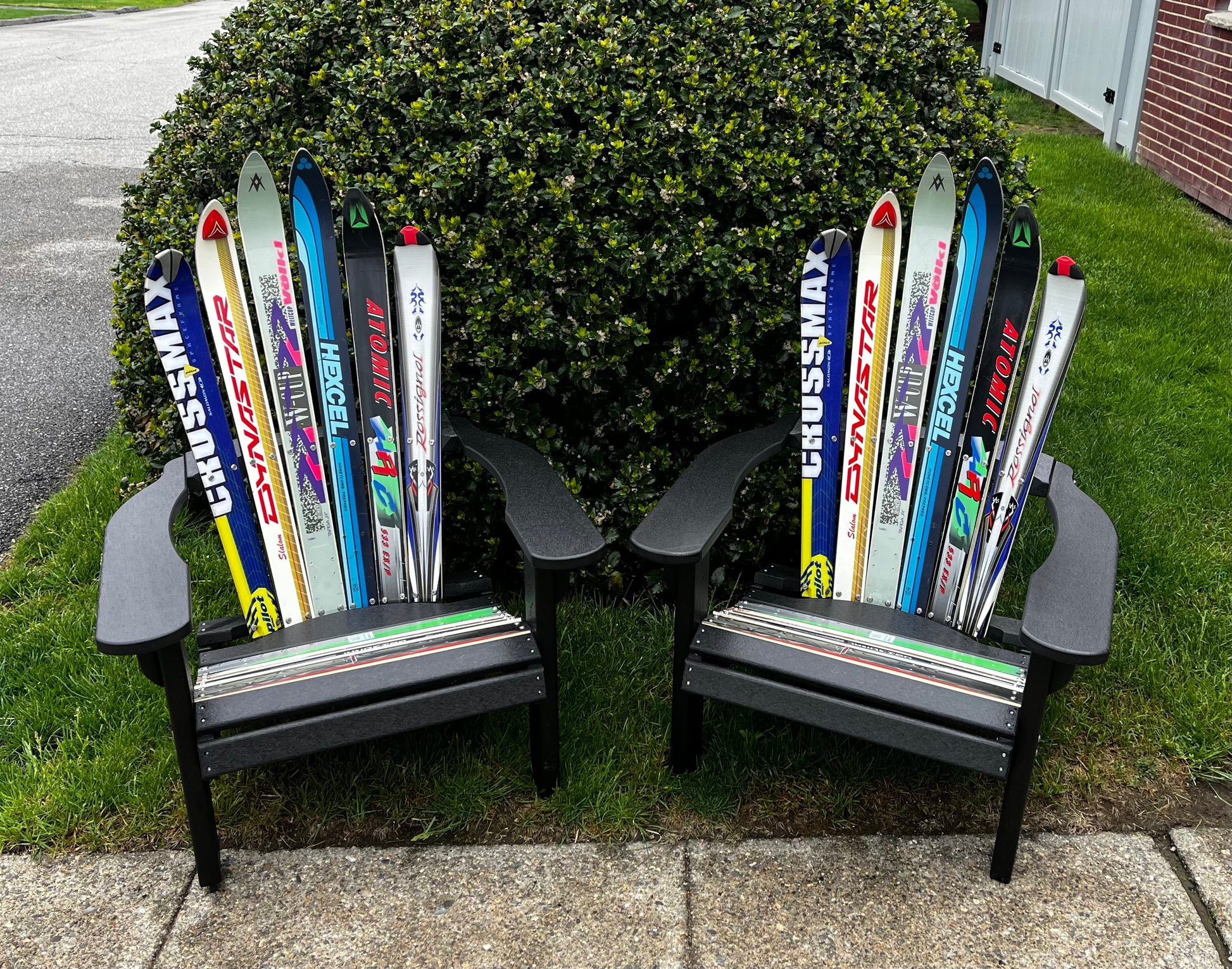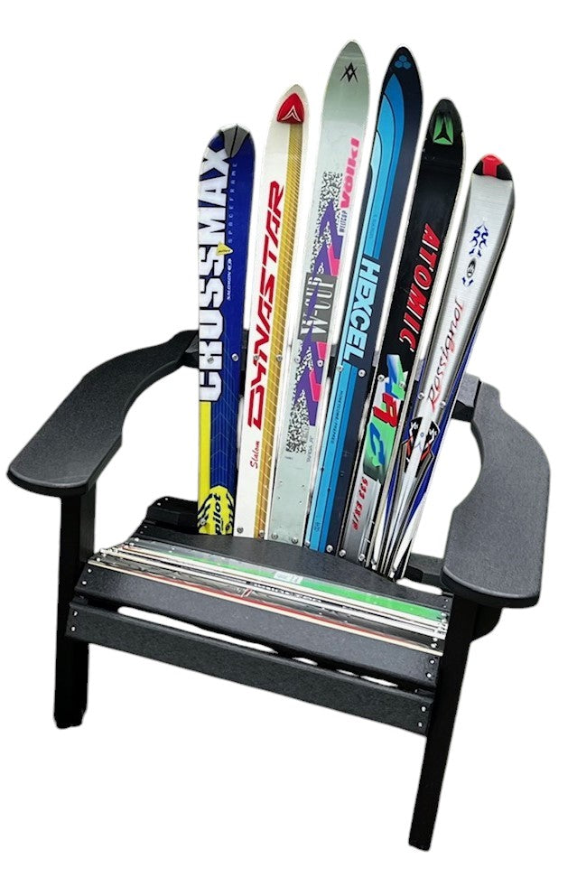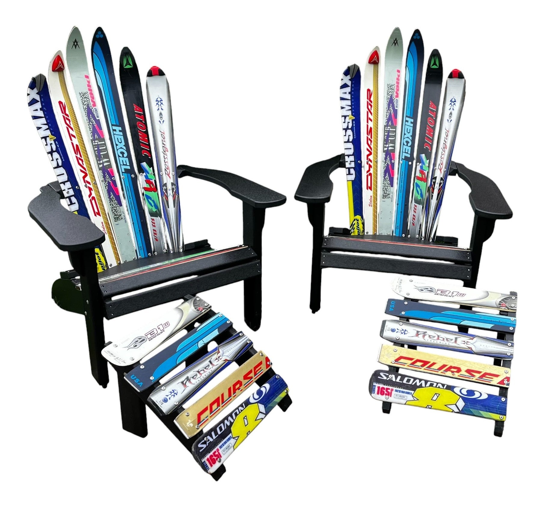 Skichairs are made entirely of recycled products and utilize recycled plastic for the base of the Chair and matching ottomans are available.